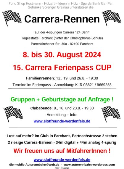 Eine der größten deutschen Slotcar-Rennserien kommt nach Farchant zu den Slotfreunden Werdenfels.